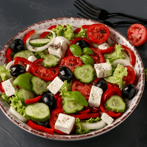 Chef salad, grilled chicken salad, antipasto salad, Greek salad, vegetarian salad, dinner salad